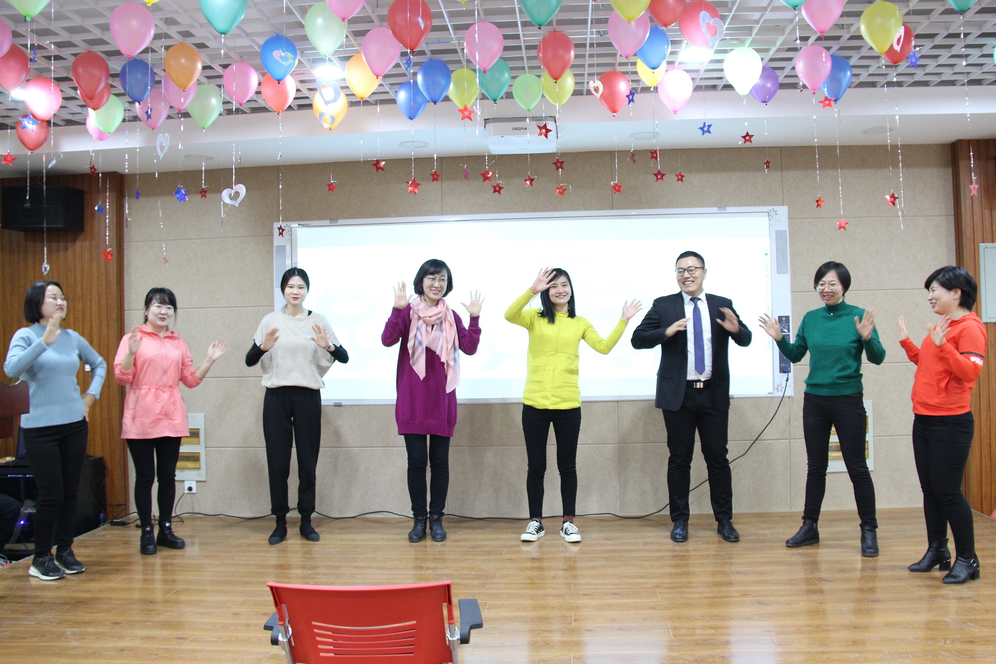 外国语公司党委书记王仁高向全体教师表达了新年祝福,希望外院在新的一年再接再厉,再创佳绩。联欢会上,公司教师精心准备的节目时尚高雅,精彩纷呈。小合唱《雪绒花》、京剧《梨花颂》、韩国歌曲串烧《小蝌蚪、三只小熊》、舞蹈《半糖主义》、小合唱《万水千山总是情》、歌曲《听海》、合唱歌曲《明天会更好》等赢得阵阵掌声。期间还有老师和小朋友们的互动,外院教师的下一代也充分展现了他们的多才多艺:王时宙小朋友带来的舞蹈《茉莉花》、徐玉凤老师和她的女儿为我们带来的诗朗诵《我们为什么活着》等。活动期间穿插的互动抽奖环节,使联欢会现场气氛热烈,激情互动,欢呼声笑声此起彼伏。