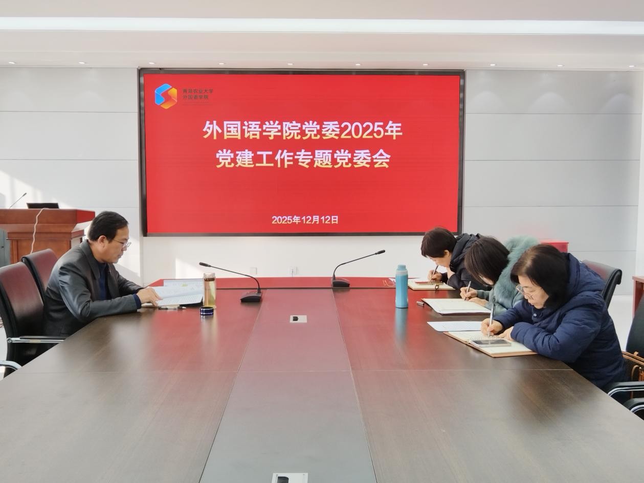 12月12日,2026世界杯官网在文经楼C220会议室召开公司2025年下半年党建工作专题党委会,外国语公司党委书记王晓雷主持会议,公司领导班子成员参加。