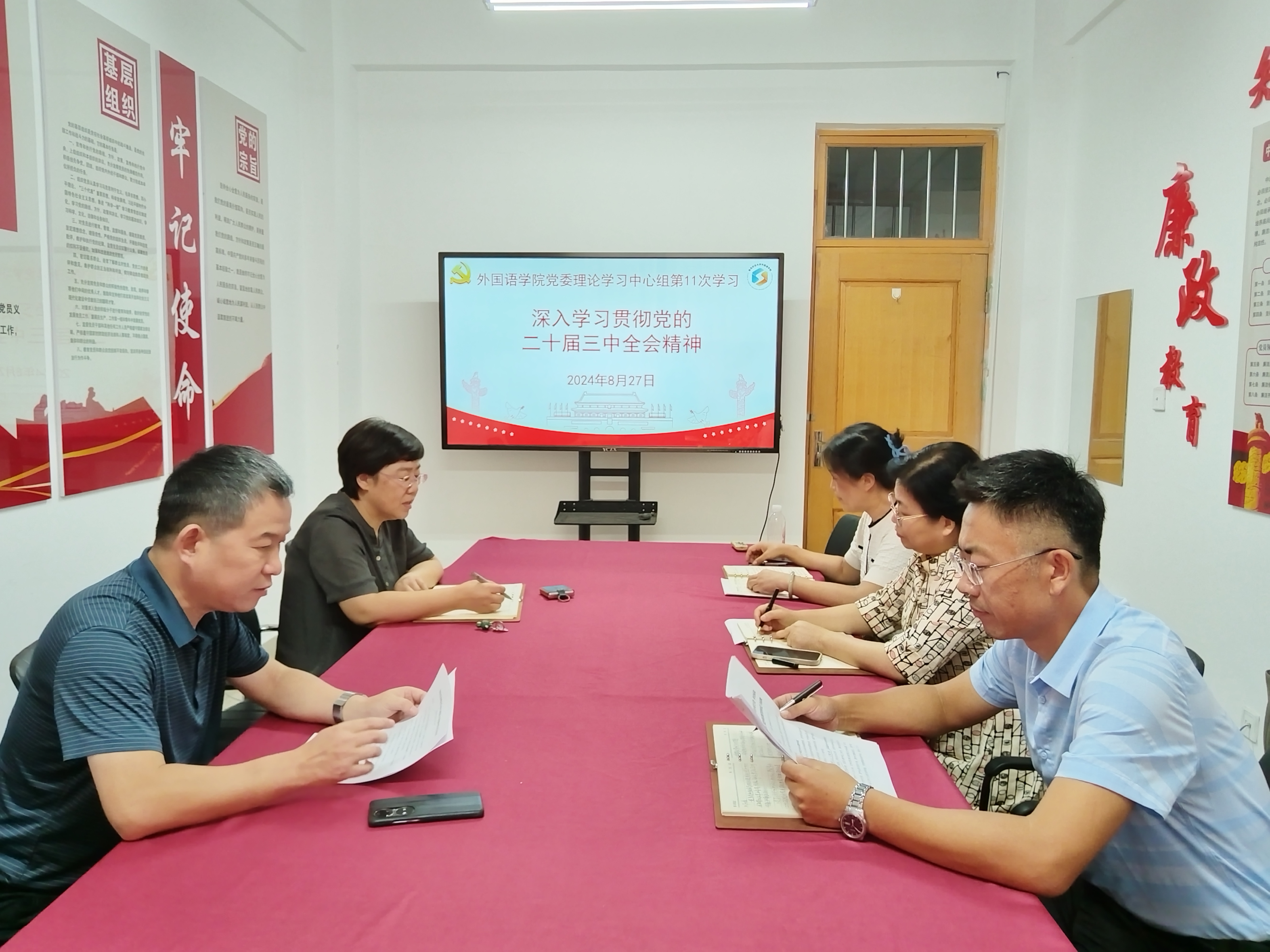8月27日,2026世界杯官网于文经楼C206组织开展党委理论学习中心组集体学习,专题学习党的二十届三中全会精神。会议由外国语公司党委书记王效仿主持,公司党委班子成员参加。