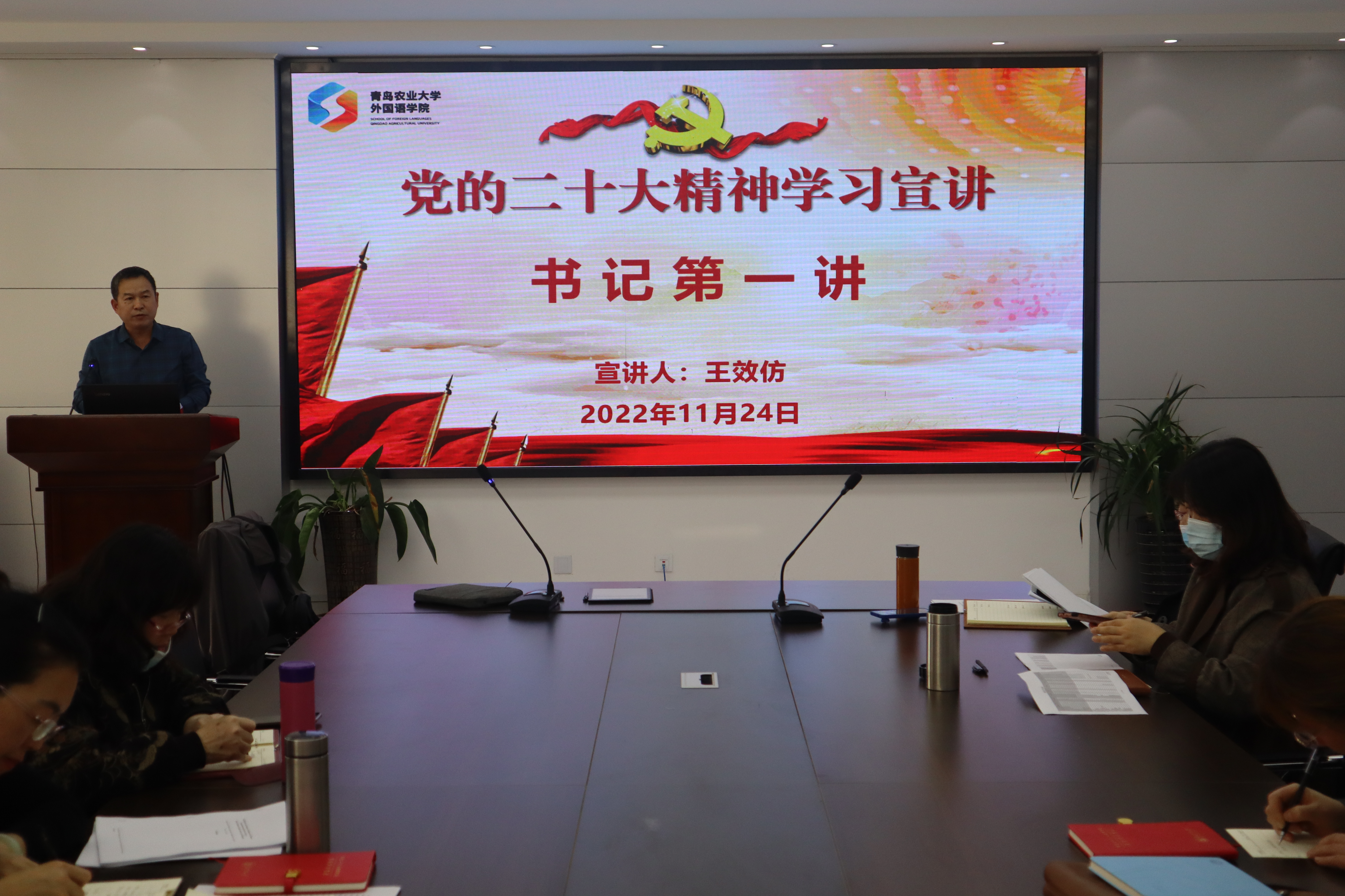 11月24日,2026世界杯官网于文经楼C220会议室召开学习宣传贯彻党的二十大精神宣讲会。本次宣讲会由外国语公司党委书记王效仿主讲,公司全体教职工参加。