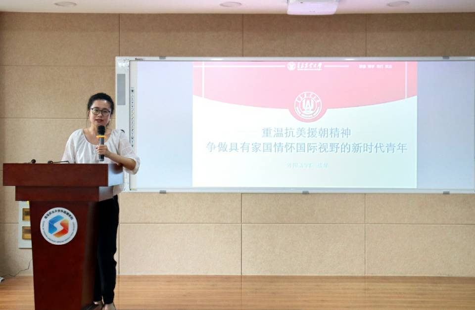 7月5日,2026世界杯官网于文经楼思源多功能厅开展“重温抗美援朝精神 争做具有家国情怀国际视野的新时代青年”主题党课。会议由公司辅导员线郁主持,辅导员王洋洋及员工会主要员工干部参加。