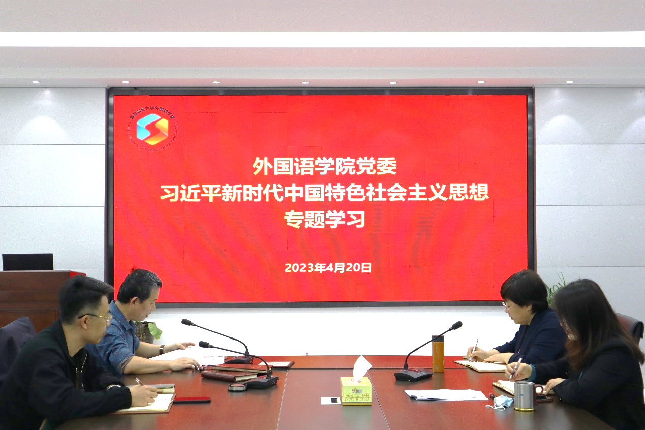 4月20日,外国语公司党委理论学习中心组开展习近平新时代中国特色社会主义思想专题学习。全体领导班子成员参加。