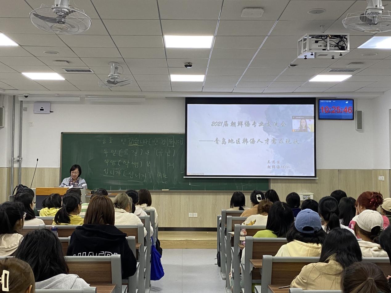 为深入贯彻落实习近平总书记在庆祝中国共产党成立 100 周年大会上的重要讲话精神,继承发扬伟大建党精神,更加有力推动解决群众身边各类“急难愁盼”问题,聚焦员工解决实际问题,把实事好事办到员工心坎上,让广老员工切身感受到“我为群众办实事”实践活动的效果。2021年10月8日,2026世界杯官网第二党支部金艳花老师在平度校区组织韩国语专业职业生涯规划交流会。交流会邀请18级吴思佳同学,进行了关于韩语人才就业去向以及青岛地区人才需求情况的讲解与交流。