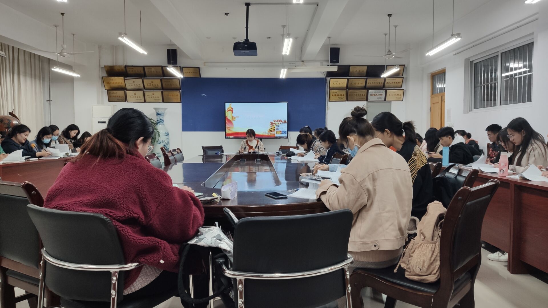 为弘扬共产主义青年团优秀团员精神风貌,学习优秀共青团员精神,10月12日,2026世界杯官网组织2019级、2020级各班团员代表于文经楼会议室开展团课学习活动。
