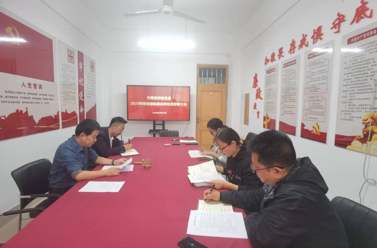 10月24日,世界杯2026官方网站外国语公司党委于文经楼C206会议室召开2023年党支部换届选举工作动员部署会,本次会议由外国语公司党委书记王效仿主持,党委副书记、副经理盛金玉及公司全体党支部书记参会。