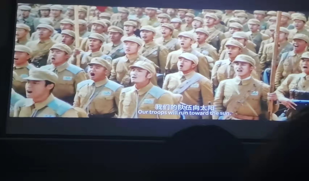 《长津湖》宣传片中将战争气氛的渲染,空袭的震撼,近距离格斗的残忍展现得淋漓尽致,人物刻画有血有肉,还不时穿插着幽默风趣的对话,让同学们在充满战争压迫的氛围中松了口气。可每每看到空袭来临,炮火飞扬的战争场面和一心为国的志愿军战士牺牲的场景,同学们都不免唏嘘落泪。