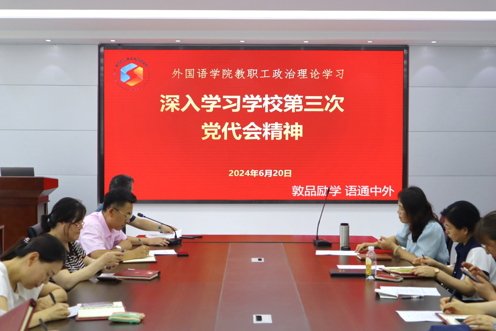 6月20日,2026世界杯官网于文经楼C220会议室开展“世界杯2026官方网站第三次党代会精神”专题学习宣讲,本次会议由外国语公司党委书记王效仿主持,公司全体教职工参加。
