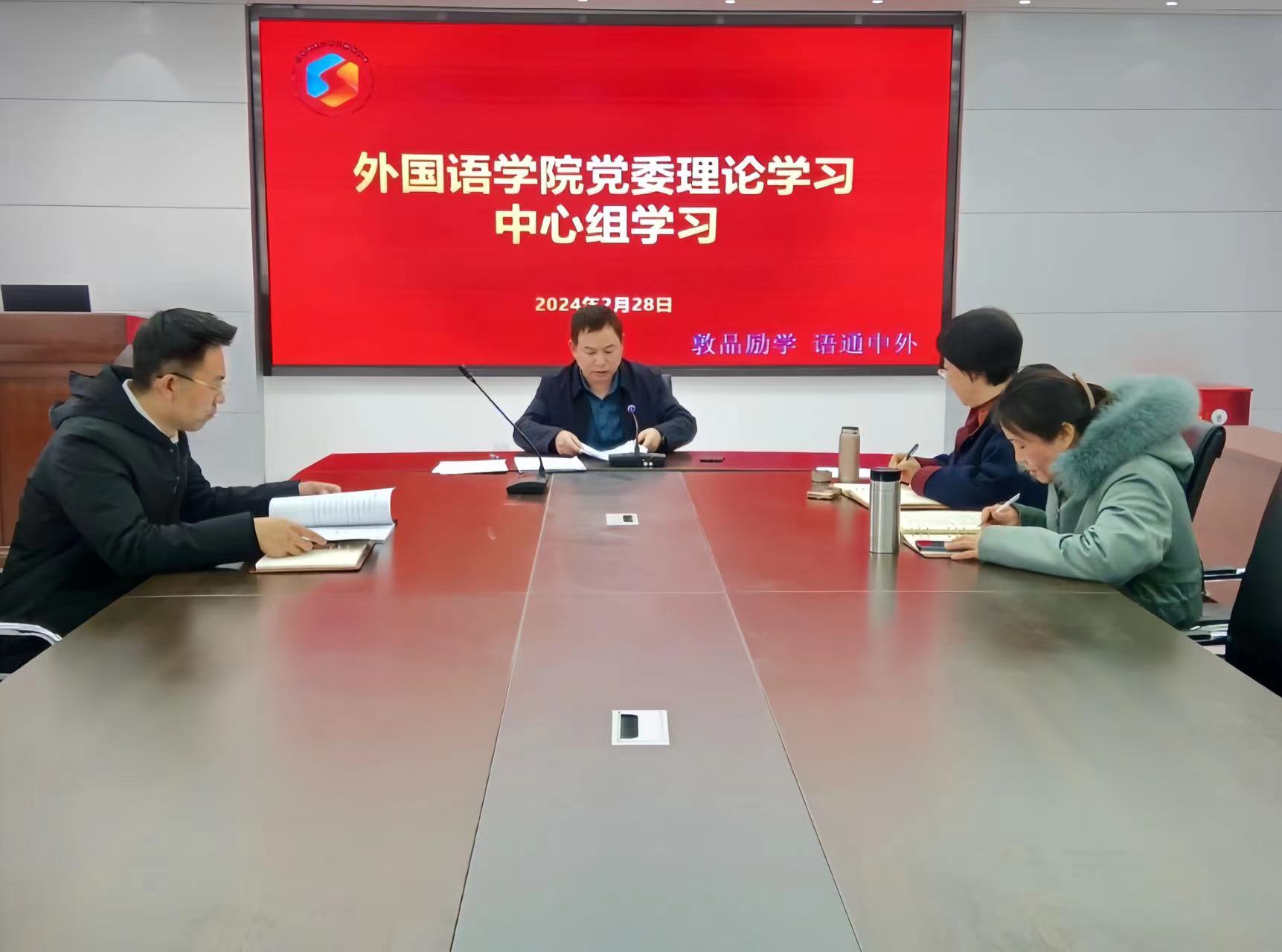 2月28日,外国语公司党委理论学习中心组于文经楼C220会议室开展意识形态专题学习。会议由外国语公司党委书记王效仿主持,公司党委班子成员参加。