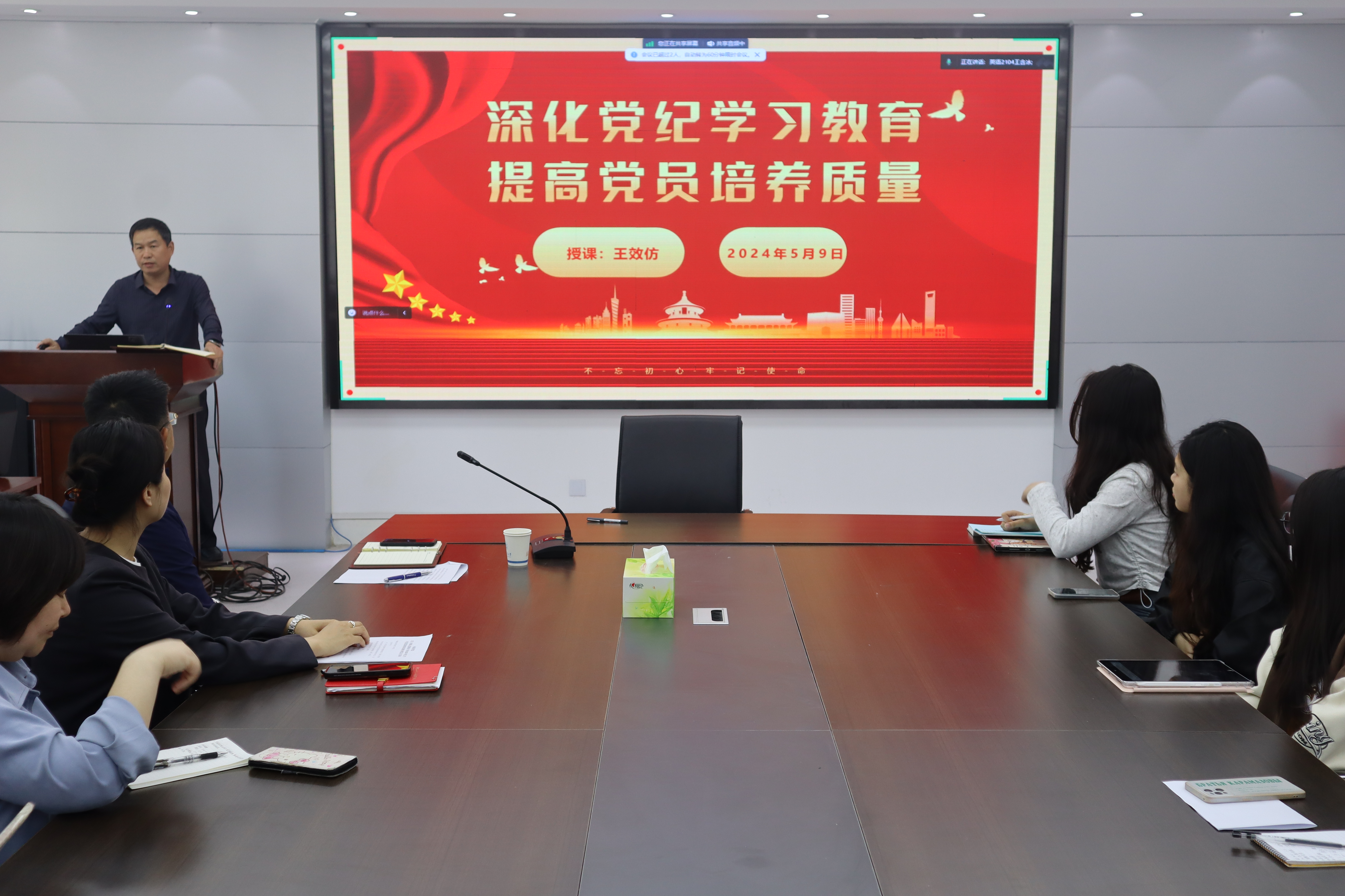 王效仿以“深化党纪学习教育 提高党员培养质量”为主题,讲授本次专题党课。王效仿向与会人员传达学习了2024年党纪学习教育的相关要求,对2023年12月修订的《中国共产党纪律处分条例》从修订的主要过程、修订的重要意义、修订亮点以及重点内容等方面进行了解读。另外,他结合公司实际,从合格老员工党员的政治思想标准、学习成绩标准、日常表现标准、社会工作标准和群众基础标准五个方面,就青年老员工如何成为新时代合格的老员工共产党党员进行了详细讲解。