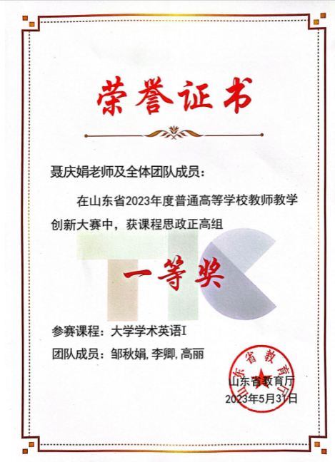 公司深入贯彻落实校二次党代会提出的团队建设为引领的战略部署,对标申报指标体系,凝练学科特色,大力加强专业及团队建设,于2021年成功申报翻译硕士专业学位点,英语专业于2019年成功获批山东省一流本科专业。