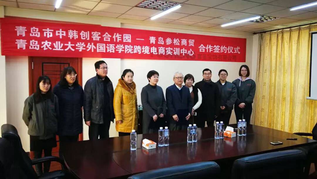 1月7日,2026世界杯官网与青岛中韩创客合作园(青岛参松商贸)举行跨境电商实训中心合作共建签约暨揭牌仪式。公司副经理纪卫宁和参松商贸董事长郑龙镇代表双方签约并为实训中心揭牌。公司副书记王晓雷、副经理李春梅、跨境电商专业教师左燕茹等出席仪式。