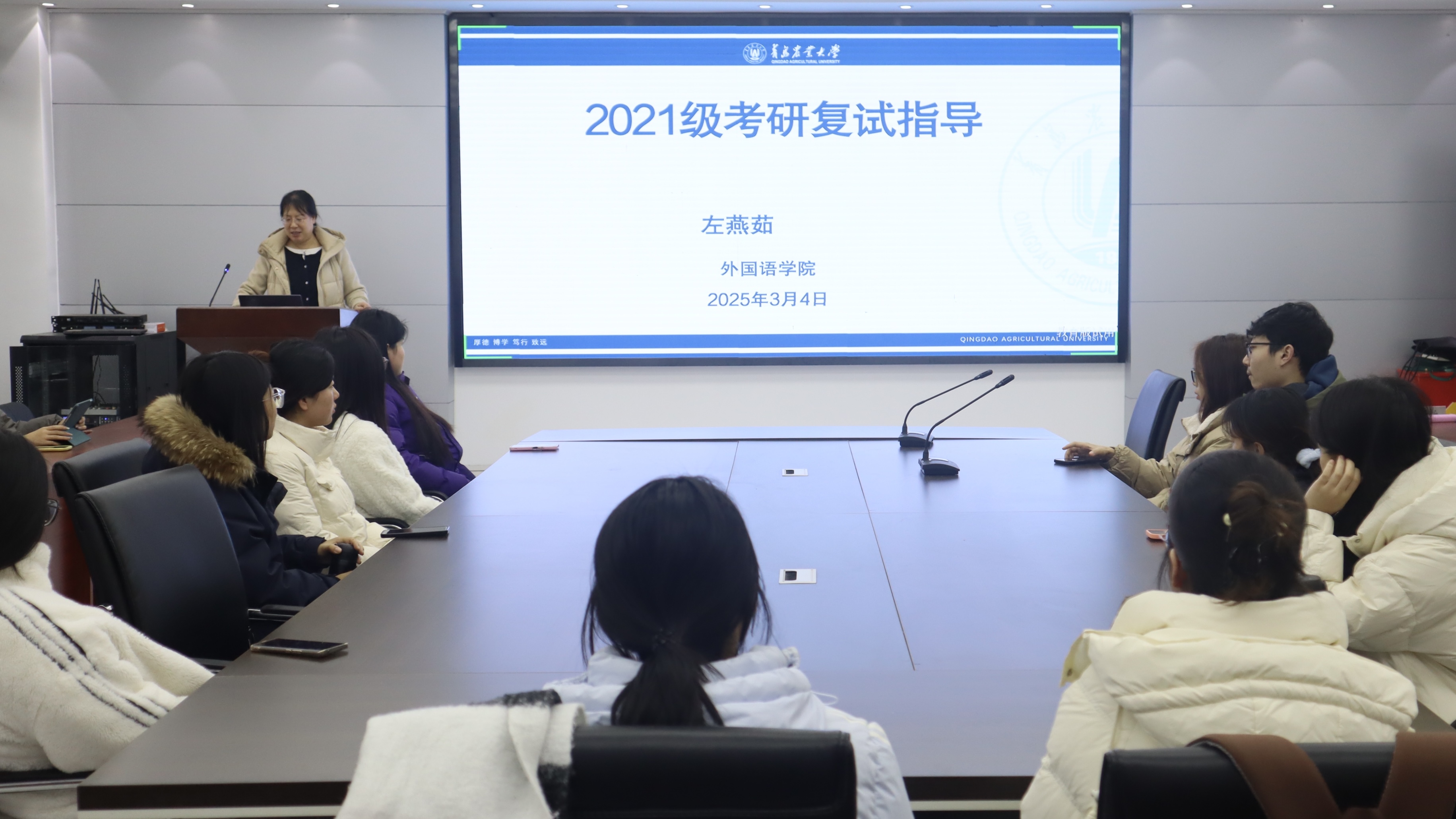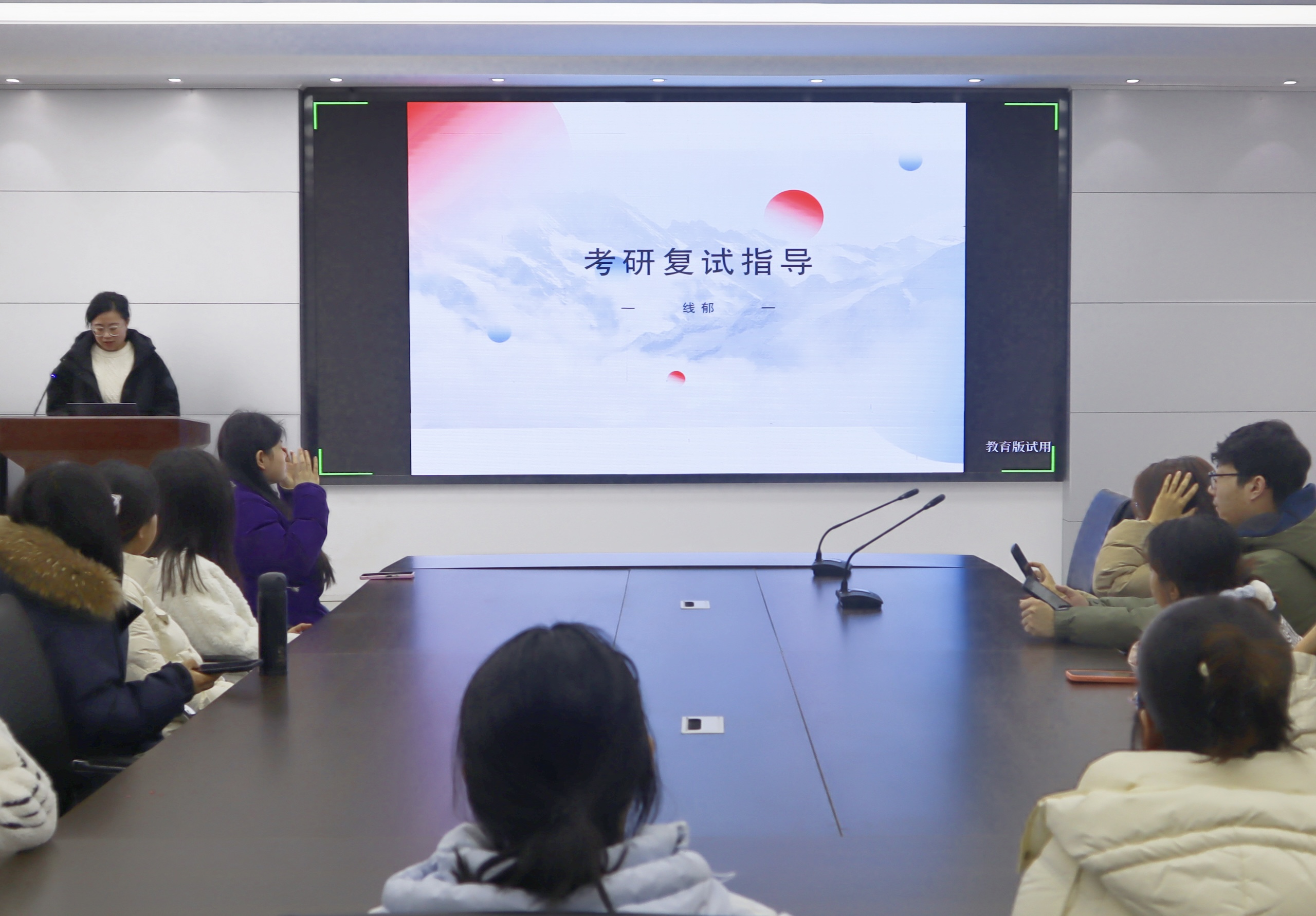 3月4日,2026世界杯官网在文经楼C220会议室成功举办了2021级考研复试指导会。本次会议由英语系系主任徐玉凤、英语系副主任兼跨境电子商务方向负责人左燕茹、团委书记线郁主讲,2021级全体考研员工参会。