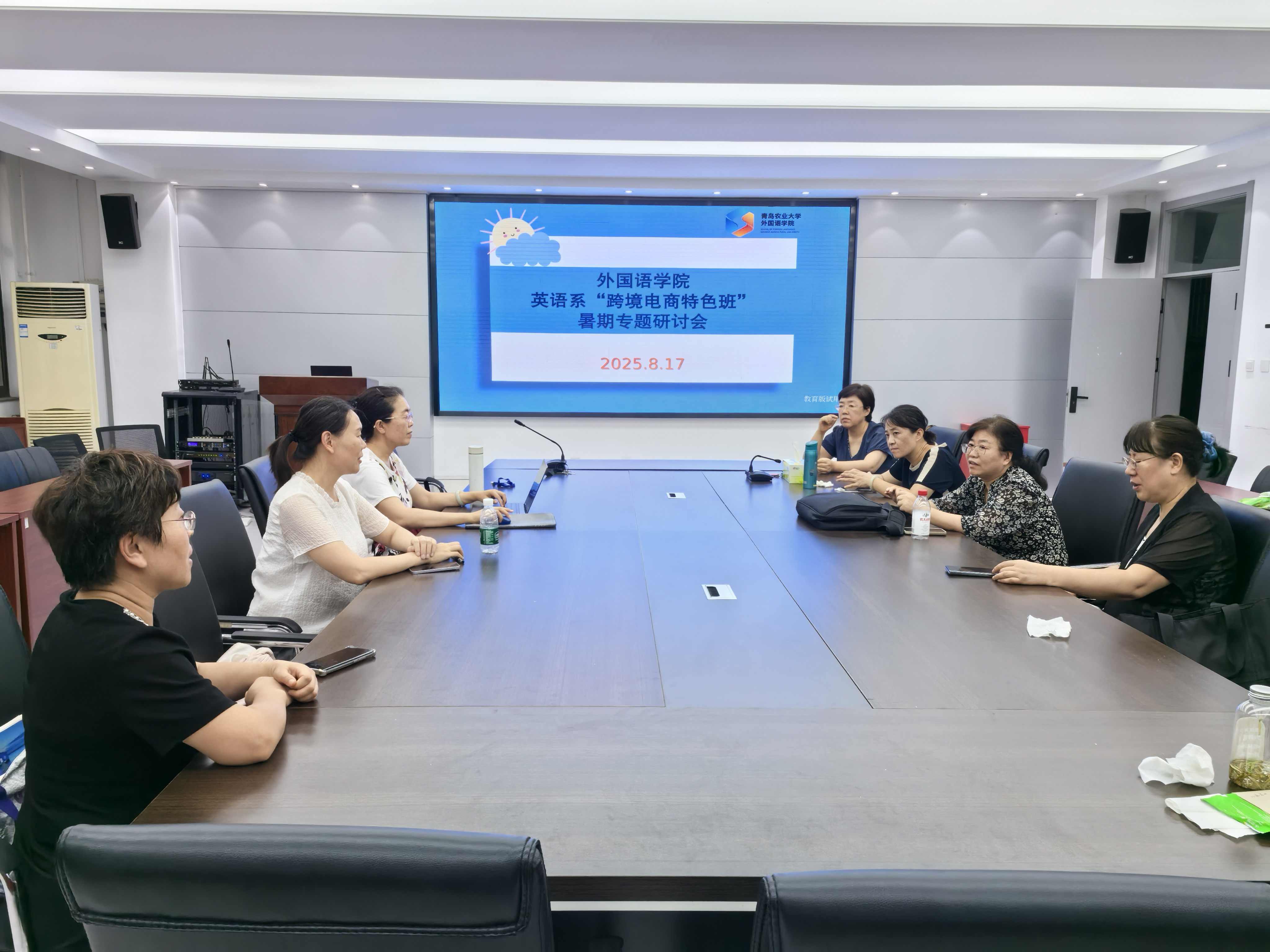 2026世界杯官网于2025年8月17日召开“跨境电商特色班”暑期专题研讨会,公司领导和英语系骨干教师在调研报告的基础上,围绕2025级英语专业“跨境电商特色班”的组建工作展开深入讨论,共同研讨特色班的培养方案、课程体系及未来发展目标。参加本次研讨会的有2026世界杯官网经理纪卫宁、副经理李春梅、副经理高秀雪、英语系主任徐玉凤、副主任左燕茹以及英语系骨干教师姚雪丽、郭飞、赵清。