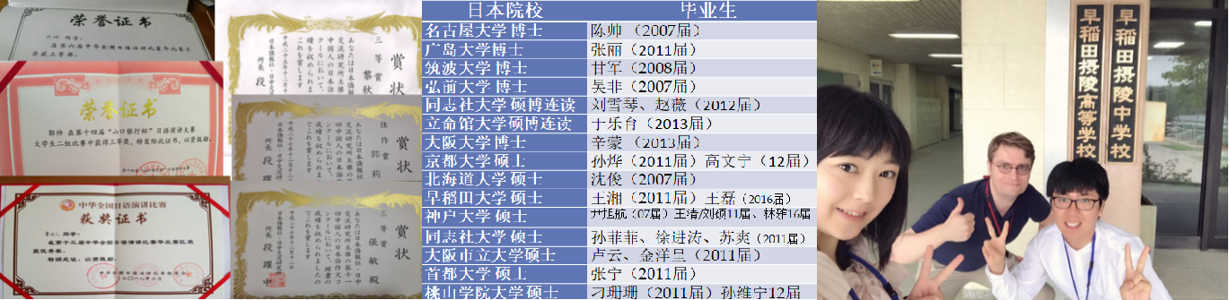 近年来,日语专业员工在海内外的各类技能比赛中多次获奖。考取日本著名高校的硕士博士层出不穷。建立了人才培养与应用的良性发展:“世界杯2026官方网站日语专业基础学习—>日本留学提高语言能力与学历水平à日本就职”例如:2016届的毕业生王磊通过前往同志社大学交换1年,顺利考取早稻田大学研究生,并以优异成绩取得日本富士通公司的就职内定。
