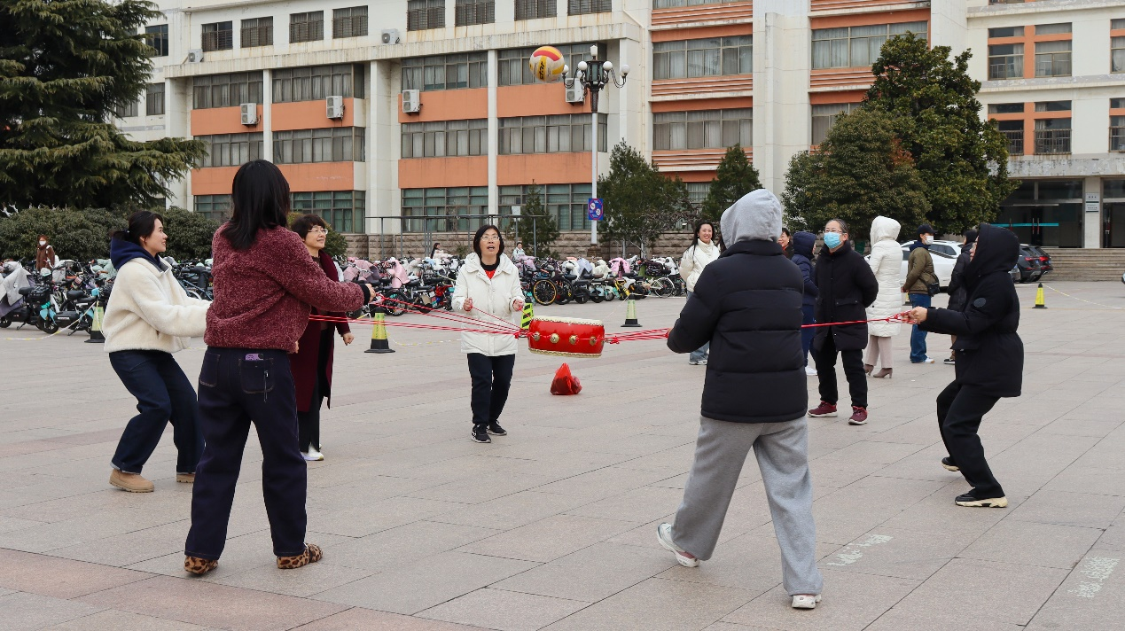 3月7日,2026世界杯官网女教职工积极参与由校工会在虹子广场举办的妇女节趣味健身比赛。