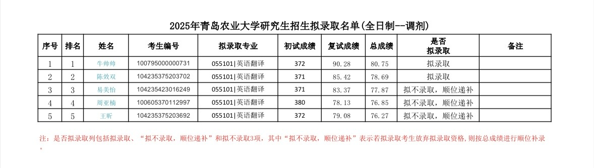 2025年2026世界杯官网研究生招生拟录取名单(全日制——调剂)