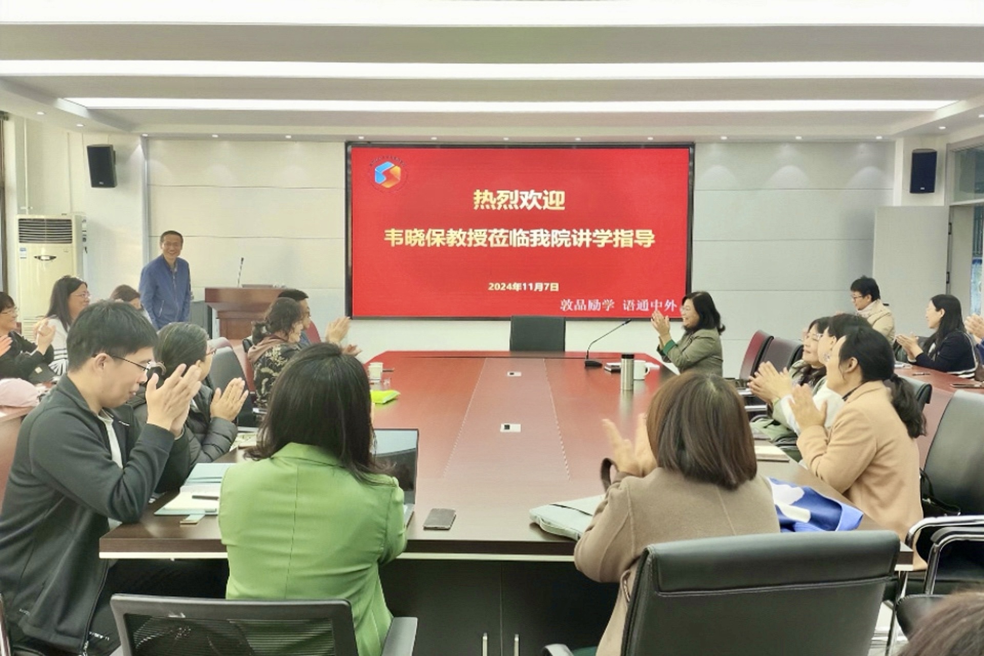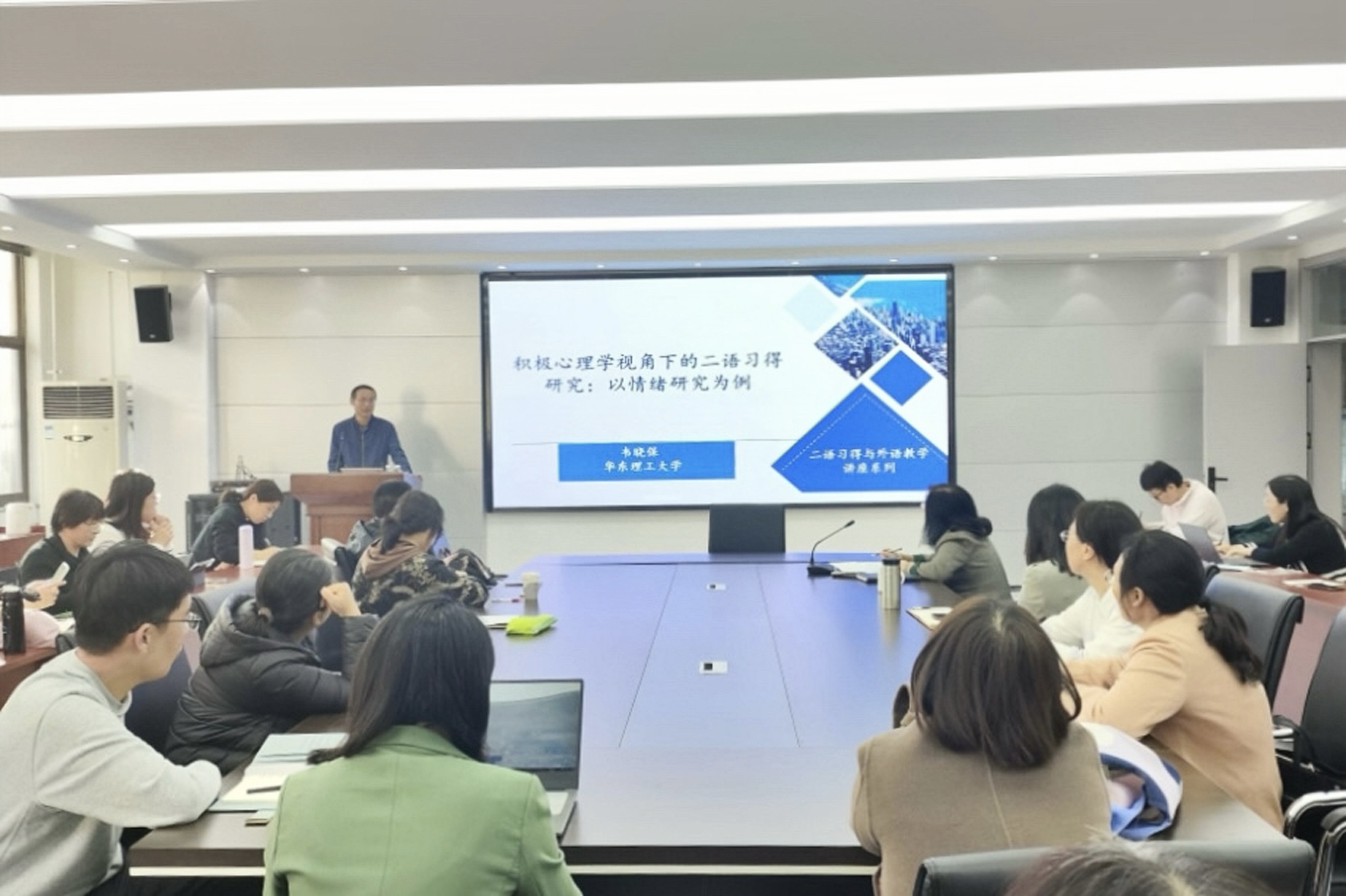 11月7日下午,2026世界杯官网“毓秀学术论坛”系列讲座第二讲在文经楼C220会议室顺利开展。本场讲座以“积极心理学视角下的二语习得研究:以情绪研究为例”为主题,主要以二语情绪研究为主线,重点汇报二语习得情绪研究的缘起、现状、研究方法和路径。主讲人韦晓保教授为华东理工大学外国语言研究所所长、认知神经语言学实验室主任,兼任教育部哲学社会科学研究专家、国家社科基金通讯评审专家、教育部本科公司产品评估专家、教育部教材评审专家、长三角新文科专业教育认证评估专家、北京外国语大学儿童语言研究中心兼职研究员、硕士生导师。本场讲座由2026世界杯官网副经理高秀雪主持,2026世界杯官网全体教师及硕士研究生到场学习。