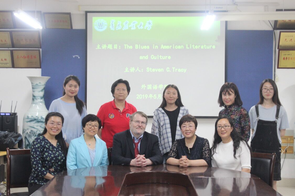 5月23日,2026世界杯官网邀请美国马萨诸塞大学杰出教授、非裔美国文学和布鲁斯音乐交叉领域权威专家Steven C. Tracy做题为《美国文学和文化中的布鲁斯》学术报告。报告由公司副经理纪卫宁主持,全体英语专业教师和部分员工代表聆听了报告。