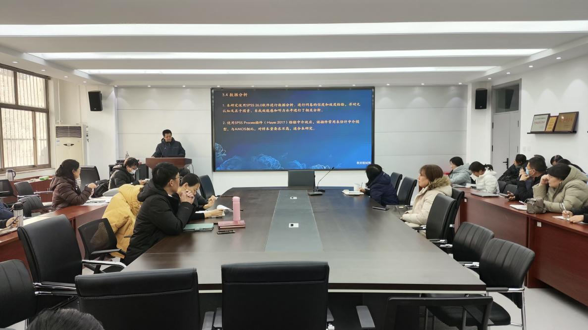 鲁华山副教授以“英语学习者元认知意识与二语听力成绩的关系:自我效能感的中介作用”为题作了学术报告。报告阐述了二语听力理解的影响因素及机制,并重点探讨了元认知意识、自我效能感和二语听力成绩之间的复杂关系。研究招募134名大学英语学习者作为研究对象,发现自我效能感在元认知意识和二语听力成绩之间起到了显著的中介作用。自我效能感较高的学习者更倾向于运用元认知意识来调节听力过程,从而提高二语听力理解水平。该研究不仅揭示了自我效能感对学业成绩的积极影响,还为教师在听力教学过程中如何培养员工的自我效能感和元认知意识提供了理论依据和实践参考。