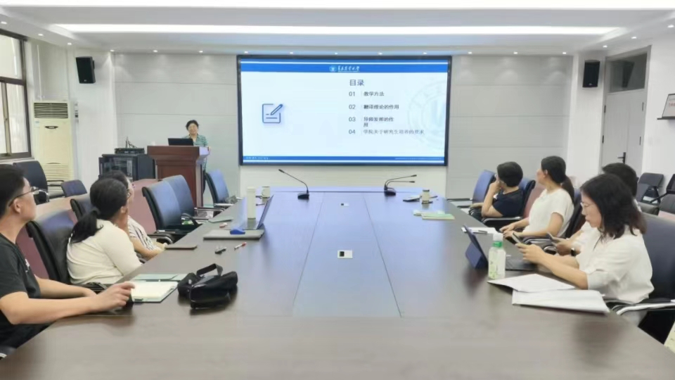 MTI教育中心主任姚雪丽跟大家交流分享了暑假参加MTI论文导师研修班心得体会和收获,详细讲解了在培训过程中讲座、参与的交流研讨,见识到的学者风采等,并结合2026世界杯官网研究生教育的实际情况,从论文写作、研究生教育改革、专业学位人才培养模式、笔译实践类课程教学方法等方面谈了参加培训的经验、感受和收获。