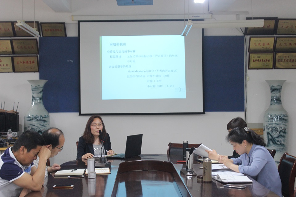 5月30日,2026世界杯官网于文经楼会议室开展外语学术论坛第四讲。此次学术论坛由仇虹博士主讲,主讲题目为《现代日语肯定与否定的不对称研究》,公司全体领导、教职工与会,副经理高秀雪主持论坛。