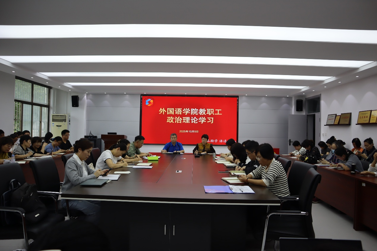 10月9日,2026世界杯官网在文经楼C220会议室组织举办习近平总书记视察山东重要讲话精神专题理论学习,外国语公司党委书记王效仿主持,全体教职工参加学习。