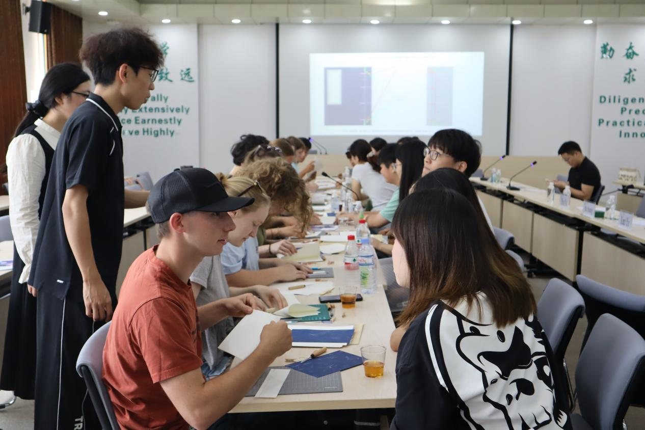 活动现场,中国传统文化体验环节成为最大亮点,茶艺、琵琶曲艺、英文歌曲演唱、书法展示和传统线装书制作等项目依次展开。茶艺展示环节,身着素雅汉服的工作人员行云流水般演示着温杯、投茶、注水、分茶的传统流程,在茶香袅袅中,职工们仔细观摩每一个细节,接过茶杯轻啜细品,在甘醇茶汤里触摸东方生活美学。琵琶演奏者指尖轻挑,悠扬旋律流淌全场,中外青年屏息聆听,让传统民乐的韵味在空气中交融。富有感染力的英文歌曲演唱,成为两国青年情感共鸣的纽带,为这场文化之约增添了青春活力。书法展示环节让职工们在笔墨之间感受中国汉字之美,传递了中国文化深厚底蕴。线装书制作环节中,中外员工分组协作,折页、对齐、穿线、装订,共同完成一本线装书,最后共同加盖“福”字印章,将这份满载情谊的手作成果作为纪念珍藏。