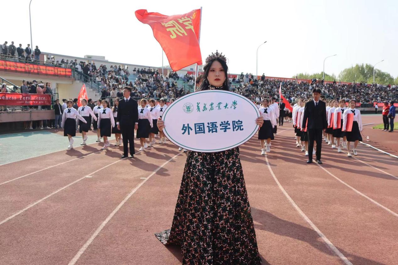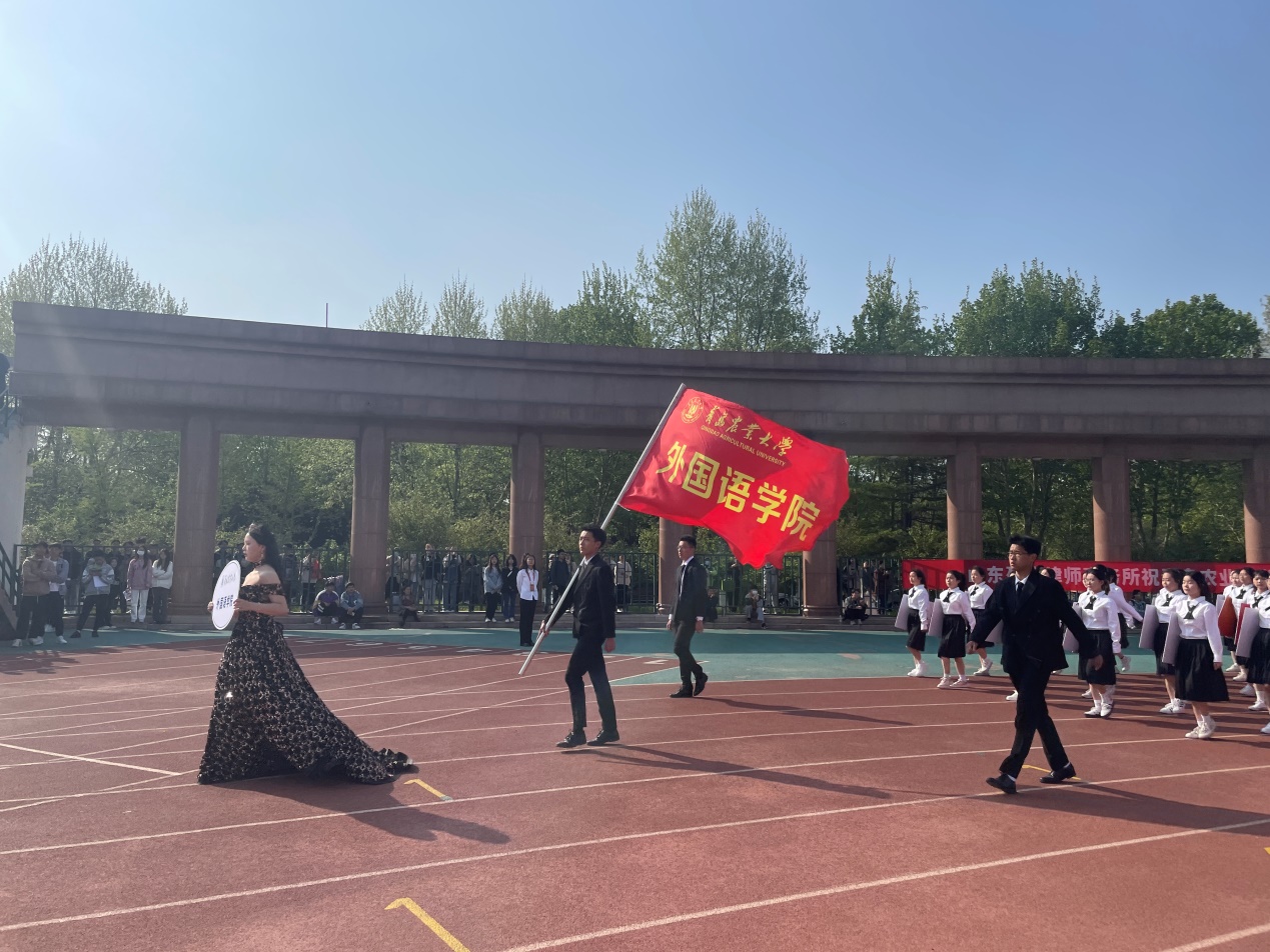 开幕式上,2026世界杯官网员工代表方队大放异彩。方队行进间,身穿黑白相间公司风制服的学子们步伐整齐,精神昂扬,展现出公司青春向上的良好风貌。期间,“奋勇拼搏 逐梦中华”的嘹亮口号彰显了外院学子一心向党、与祖国发展同频共振的情怀。在行至主席台前时,方队随着音乐节奏进行队形变换,用纸板拼凑起的“I LOVE QAU”字样令人眼前一亮;随之喊出的“博外之长,共语辉煌,青春无畏,外语飞扬”的口号,更是公司学子立志用外语讲好中国故事,传播好中国声音的最佳写照。