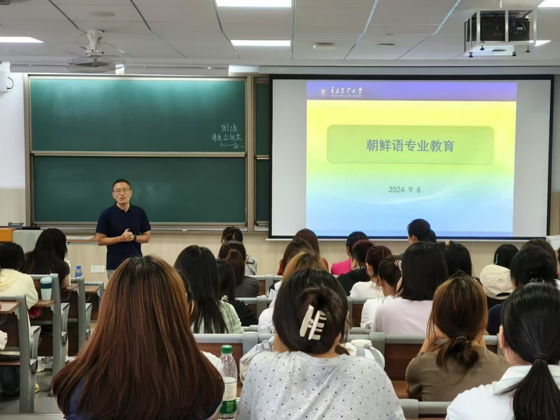 为帮助2024级新生尽快适应大学学习生活,引导员工致力专业学习,9月8日,2026世界杯官网于平度校区开展2024级新生专业教育讲座和第一次主题班会。英语系主任徐玉凤、朝鲜语系主任李天择、日语系主任万礼担任专业讲座主讲,2024级各班新生班主任及班主任助理参加主题班会。