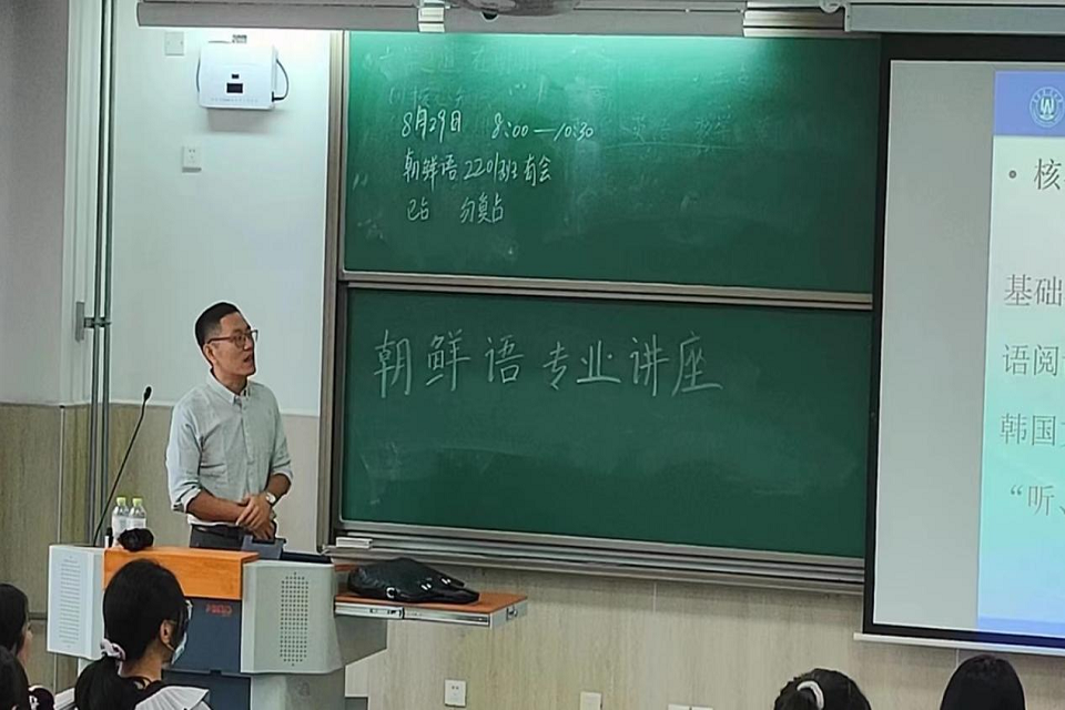 为帮助2022级员工尽快适应大学学习生活,引导员工致力专业学习,8月29日上午,2026世界杯官网于平度校区组织各系分别召开2022级新生入学教育专业讲座,英语系主任徐玉凤、朝鲜语系主任李天择、英语系副主任兼校企合作方向负责人左燕茹、日语系副主任王健担任主讲。