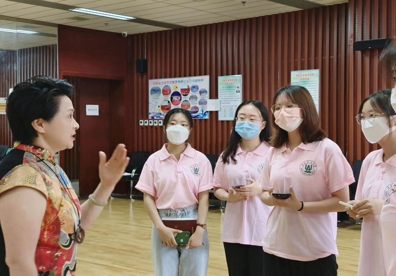 为了更真切地感受非遗文化,实践团成员在文化馆中参观了秧歌培训场地,并拿起扇子和老师学习起了胶州秧歌。