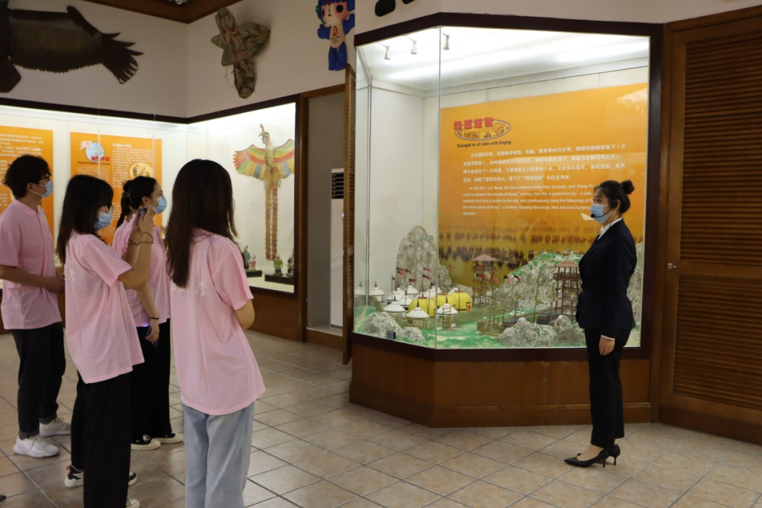 第二站,潍坊世界风筝博物馆。“天上风筝飞,天下风筝美”。7月10日上午,实践团队走进了潍坊世界风筝博物馆,在这里,体味到了独属于风筝的文化魅力,感受到了其深刻的文化底蕴。软翅风筝、硬式风筝、串式风筝等各式各样的风筝映入眼帘。当地特色的杨家埠年画风筝,色彩强烈,鲜艳明快,形成了潍坊风筝与其他流派风筝相区别的特点;西方风筝多以玻纤或碳纤为材料,在风筝造型及颜色上力求鲜明、简洁,多以单纯的色块来表现。不同国家的风筝展现出不同的色彩与文化,传递出不同的精神价值与文化理念。