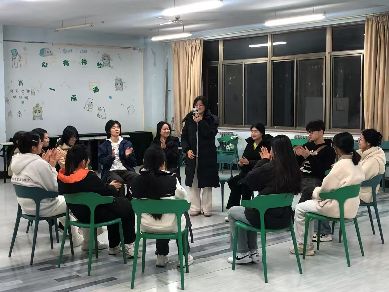 在辅导培训过程中,员工们分为三组,为各自的队伍设计队名、队徽以及口号。在这一过程中,员工们畅所欲言,增进了彼此之间的了解。本次团体辅导培训活动共包括三个游戏环节:大风吹、营救队员和纸牌游戏。每个环节,队员们都出谋划策,群策群力。在辅导结束后的分享时刻,每个人都分享了自己的感受和收获。他们表示,通过参与这些活动,不仅学会了如何在团队中更好地沟通和协作,还增强了直面挑战的信心。此外,活动还帮助他们认识到心理支持的重要性,以及在日常生活中如何更好地关注和理解他人。培训结束时,同学们对心理委员和宿舍信息员的角色有了更深刻的理解,他们表示将把在培训中学到的知识和技能应用到实际工作中,为营造积极向上的心理育人氛围贡献自己的力量。