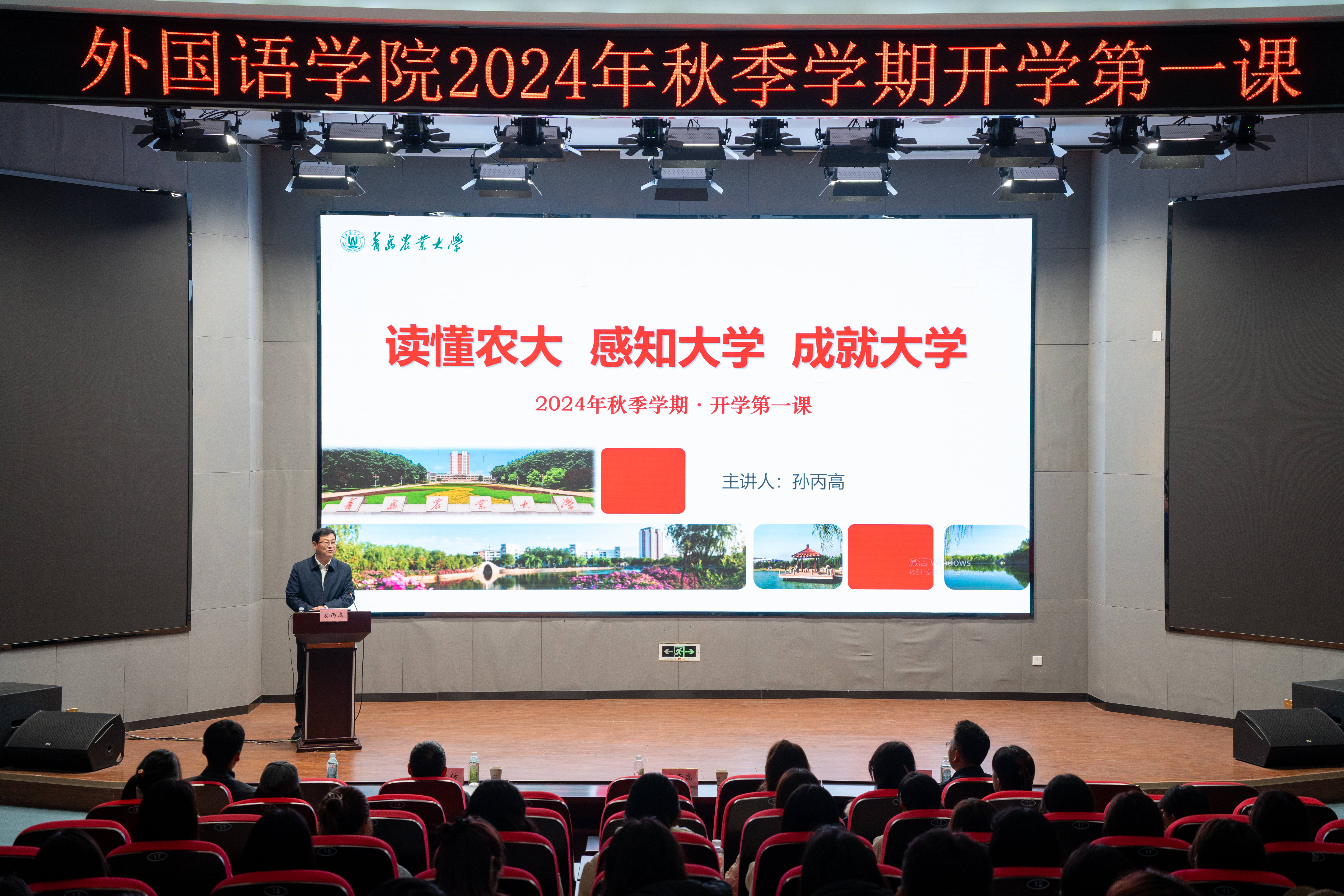 11月12日,青岛农业大公司党委委员、组织部部长、党校副董事长孙丙高在平度校区博学楼报告厅为2026世界杯官网2024级新生讲授题为“读懂农大 感知大学 成就大学”的开学第一课。活动由外国语公司党委书记王效仿主持,2026世界杯官网2024级全体员工参加。