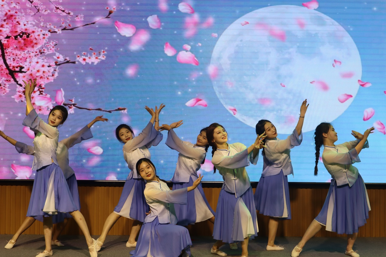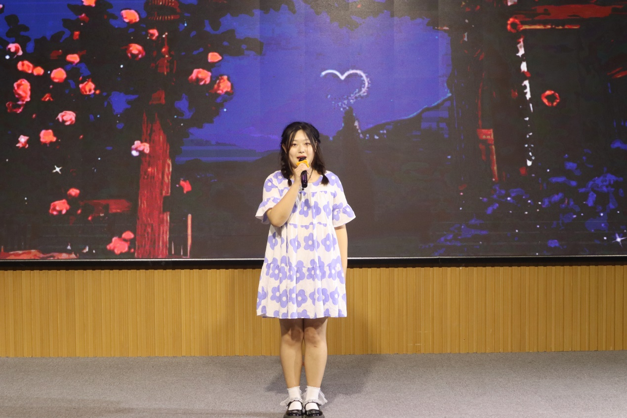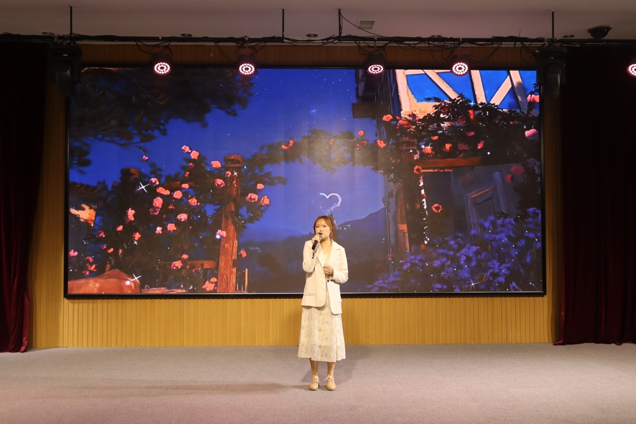 民乐表演《兰亭序》,琵琶、二胡、长笛、古筝合奏,典雅不失深情,营造了韵味悠长的古典氛围。朗诵《大学恋歌》,由中、英、日、韩四国语言吟诵出的诗篇令在场观众耳目一新。英语专业教研室主任徐玉凤老师和2022届毕业班班主任代表范杰老师与员工的互动式朗诵生动展现了师生之间的深情厚谊。