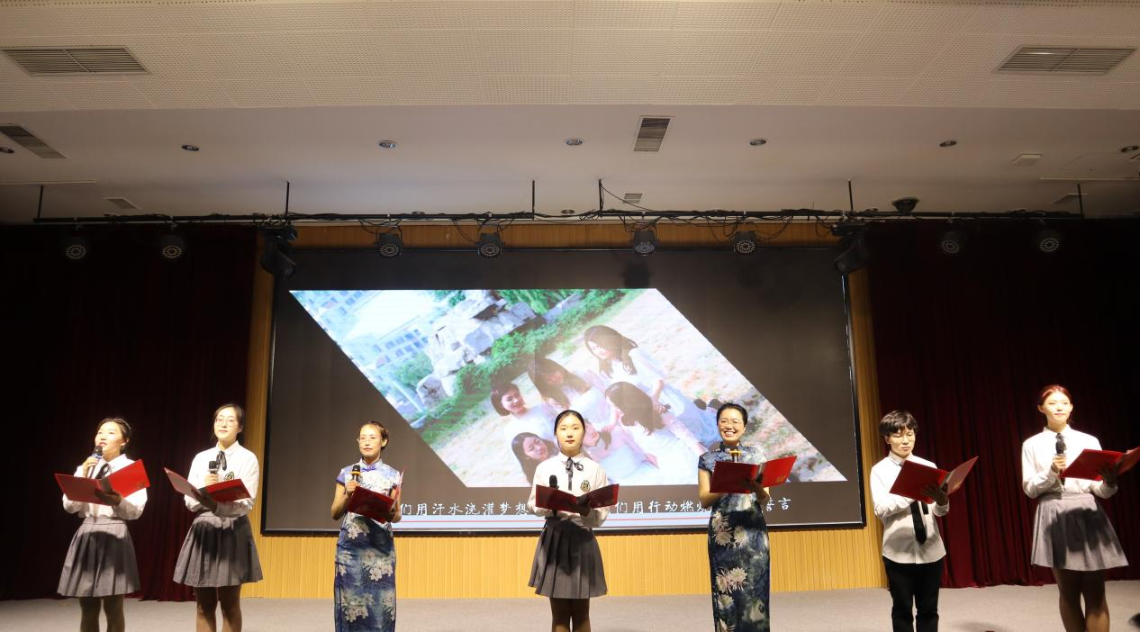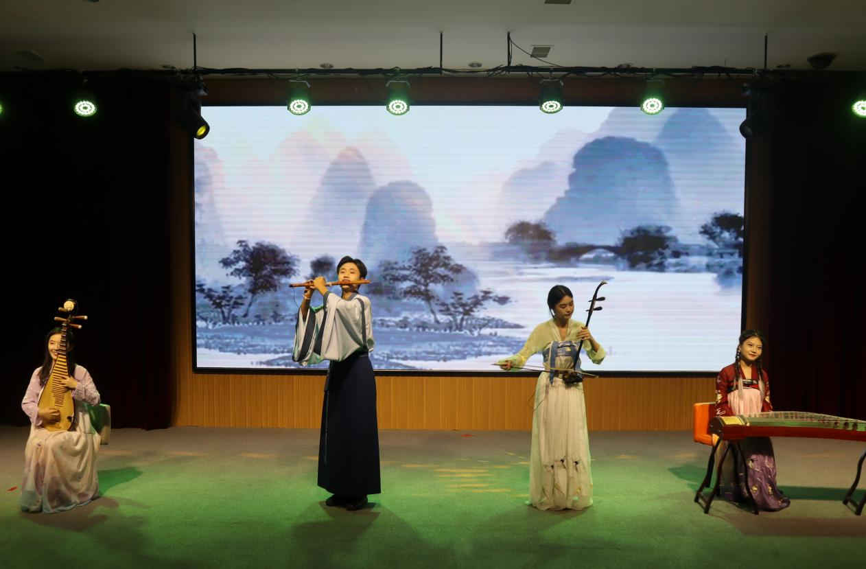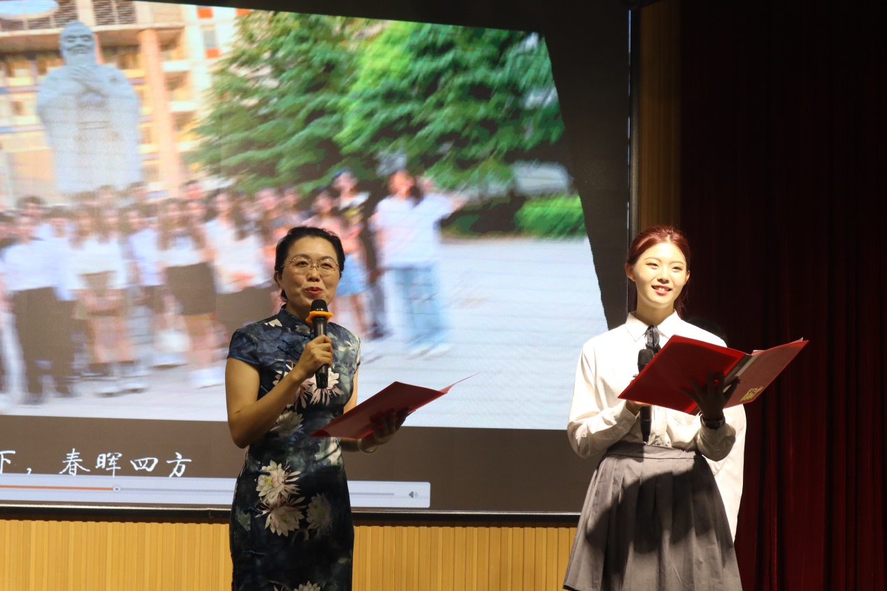 民乐表演《兰亭序》,琵琶、二胡、长笛、古筝合奏,典雅不失深情,营造了韵味悠长的古典氛围。朗诵《大学恋歌》,由中、英、日、韩四国语言吟诵出的诗篇令在场观众耳目一新。英语专业教研室主任徐玉凤老师和2022届毕业班班主任代表范杰老师与员工的互动式朗诵生动展现了师生之间的深情厚谊。