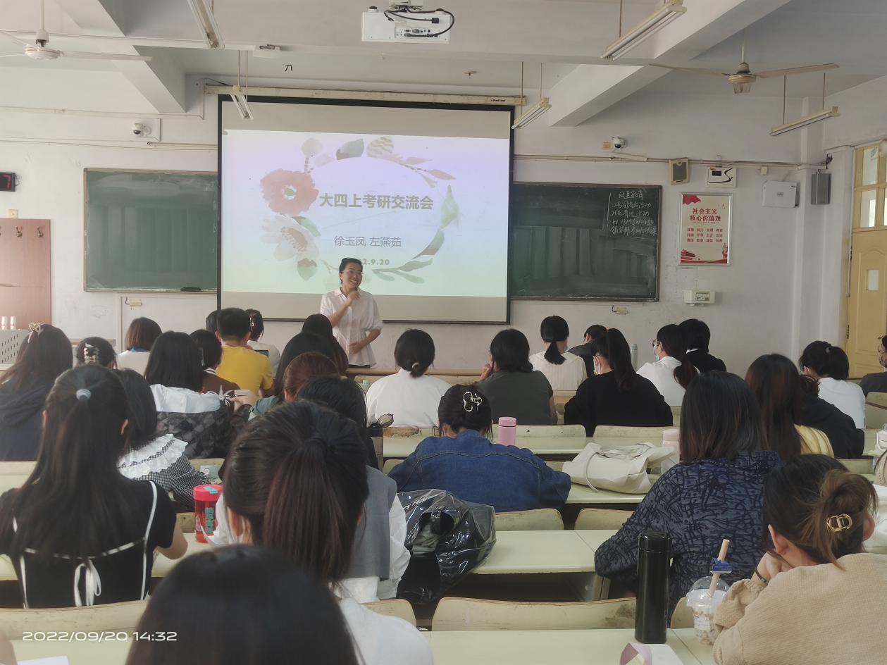会上,徐玉凤从如何克服考研焦虑、如何度过考研前紧张的日子、如何看待考研经验贴等方面与同学们展开交流。徐玉凤强调:考研就是考验,“所有的成绩都是背后夜以继日的努力沉淀出来的。”考研的路上要全力以赴,让这段日子成为自信的源泉之一,在今后的人生旅途中让这段日子成为荣耀的过往。考研的路上,要成为自己、舍友和同行者最坚定的支持者、 信任者、鼓励者和约束者。同时,要积极寻求老师们的帮助。