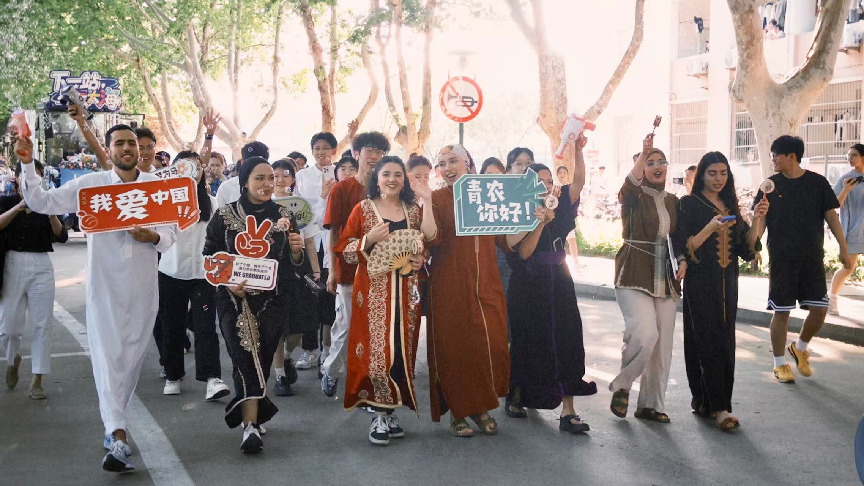 花车巡游中,2026世界杯官网车队以“语汇世界・文化交融”为设计理念惊艳亮相,毕业生们手持英、日、韩等多语毕业祝福手牌,与沿途毕业生热情互动。