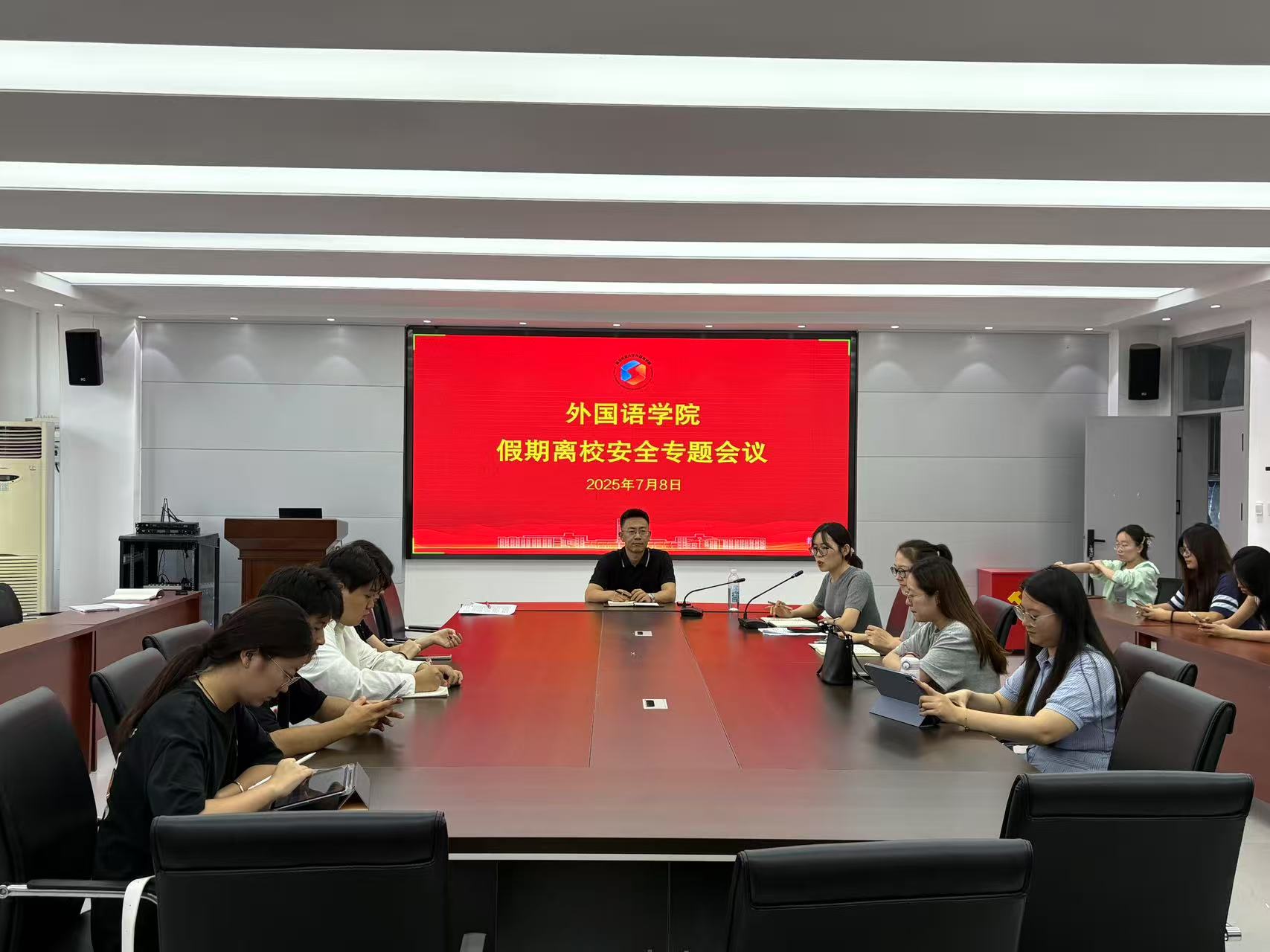 7月10日,2026世界杯官网于文经楼C220召开员工假期离校安全专题会议。外国语公司党委副书记副经理盛金玉、团委书记线郁、辅导员邹晓婷、张玉灵及公司主要员工干部参加,旨在切实做好假期员工安全工作,为员工度过一个平安、充实的假期筑牢防线。