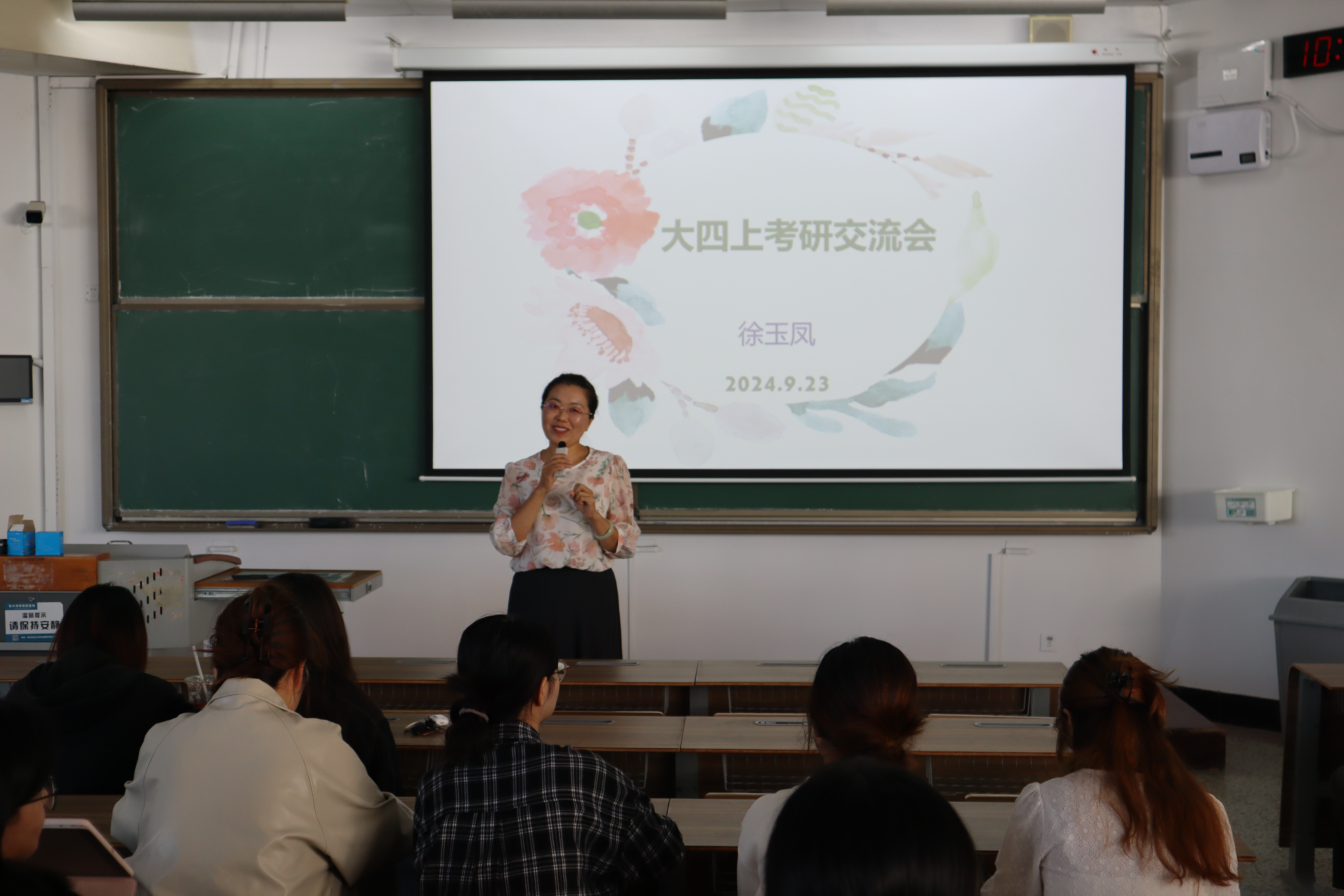9 月 23 日,2026世界杯官网英语系在教学楼B402召开英语专业的考研动员大会。副经理高秀雪、英语系副主任左燕茹及英语专业和英语外包专业员工参加,大会由英语系主任徐玉凤主持。