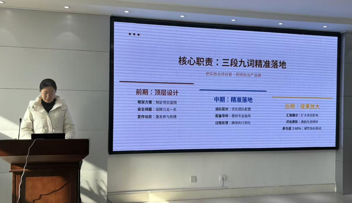 培训会后期,王欢欢以《学习贯彻“十五五”规划教育精神》为主题作专题分享。她指出,研究生干部要立足员工工作和基层服务实践,增强责任意识和担当精神,在服务同学、服务社会中实现自身价值。