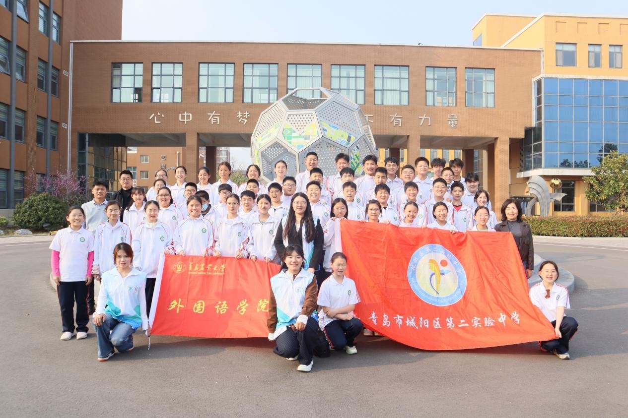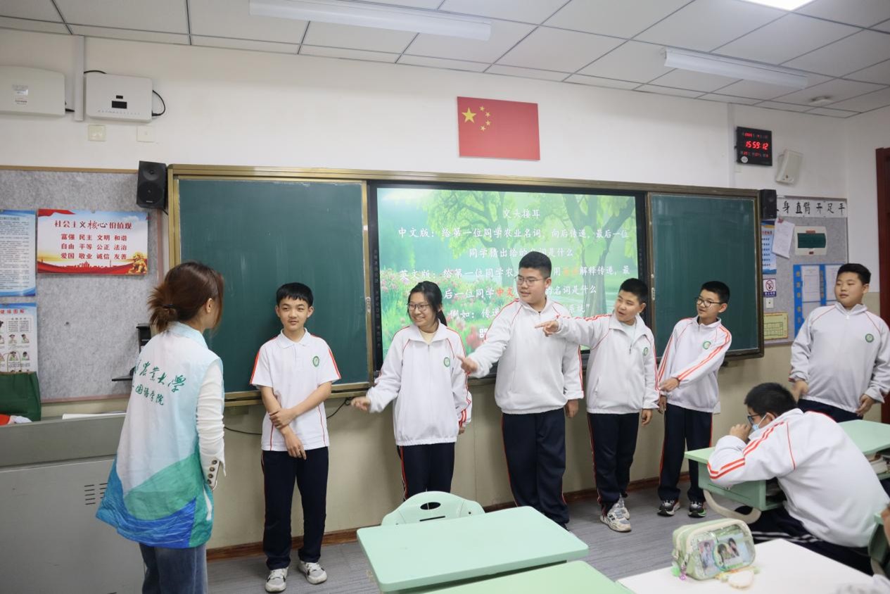 4月1日,2026世界杯官网走进城阳区第二实验中学开展“向阳计划——语润农耕译传情,农遗双语润青春”进课堂活动,用双语传播农耕文化。本次活动由辅导员王洋洋带队,社会实践指导中心组织,研究生张一岳主讲。