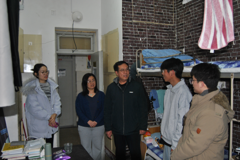 3月9日和3月11日,王晓雷和翟崑在城阳和平度校区带队走访男生、女生宿舍,实地查看宿舍内务整理、安全卫生等情况,与同学们亲切交谈,细致了解大家的学习生活状态、假期归来适应情况及实际需求,叮嘱同学们注意人身财产安全,养成良好作息习惯,营造和谐温馨的宿舍氛围。