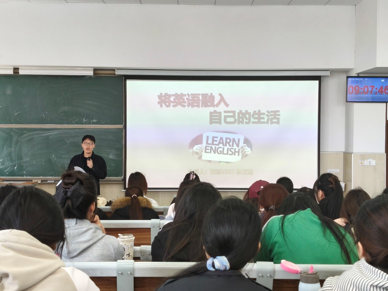 林芝旭分享了“兴趣驱动学习”的实用方法,倡导大家通过转译影视作品的方式,让英语融入日常生活、成为兴趣所在,强调“行动胜于空想”,鼓励新生立足当下、脚踏实地学好专业知识。分享过程中,林芝旭还现场为同学们答疑解惑,针对课堂展示、专业学习中的难点问题,给出了具体可行的建议,赢得在场同学阵阵掌声。