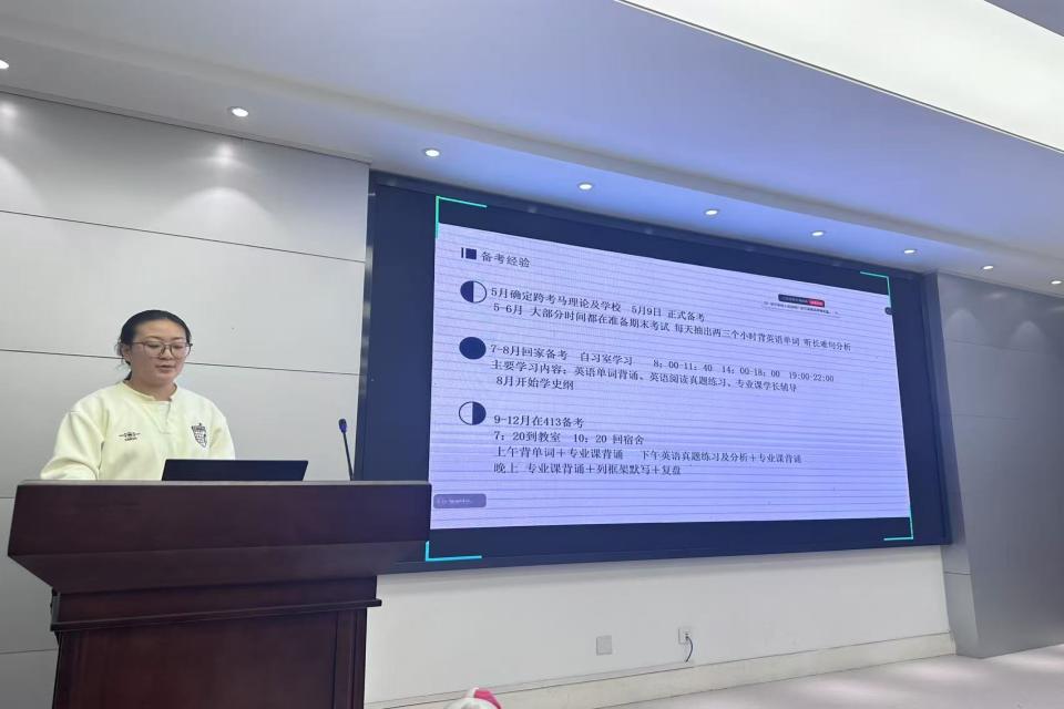 公司在C220会议室举办英语+出国留学方向、跨专业方向、日语+朝鲜语方向共3场考研经验分享会。温佳慧等15名成功上岸的学长学姐,从择校选专业、备考全流程等核心维度,分享了最真实的备考心路与实用经验,助力学子们高效备考。