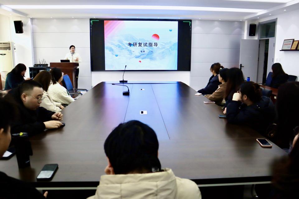 公司在C220会议室举办研究生复试指导,专业教师结合自身多年外语教学、公司产品及复试评审经历,系统传授备考与复试经验。英语系主任徐玉凤、副主任左燕茹、团委书记线郁分别从复试流程、导师选择、应试技巧、材料准备等维度进行细致讲解,帮助员工理清思路、掌握方法,增强备考信心。