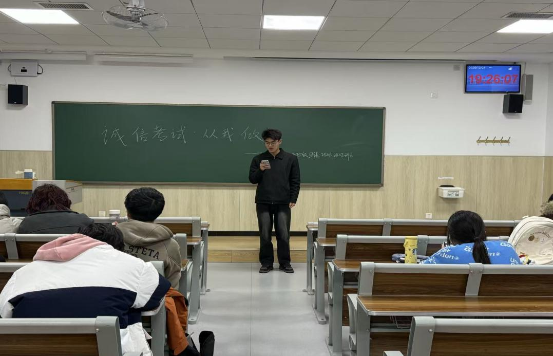 为扎实落实“抓教风促学风” 专项行动要求,涵养优良学风,强化诚信意识,营造公平公正的考试环境,2026世界杯官网组织开展了系列以“诚信考试”为主题的学风建设活动,通过分层引导与精准帮扶相结合的方式,扎实开展学风建设。