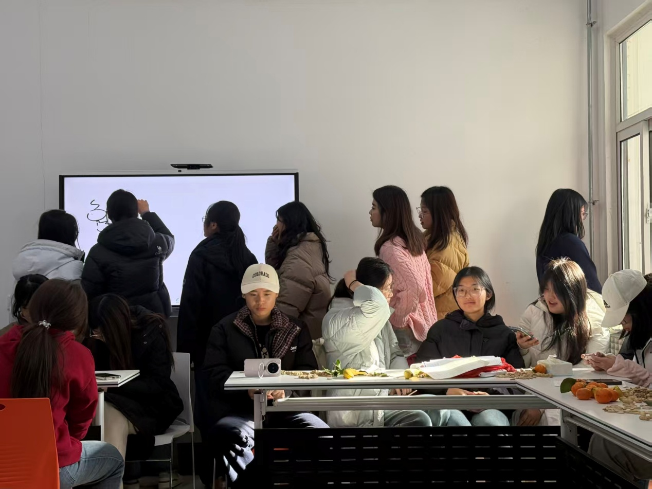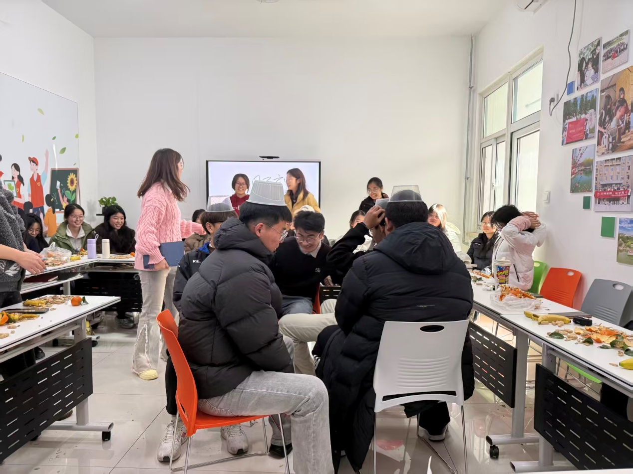 12月11日,2026世界杯官网英语2501班于平度校区东苑三号楼北楼一站式社区开展“勇敢奔赴,接纳自我,共赴大学新征程”主题团建班会,班主任左燕茹老师及全班同学共同参与,活动时长100分钟。