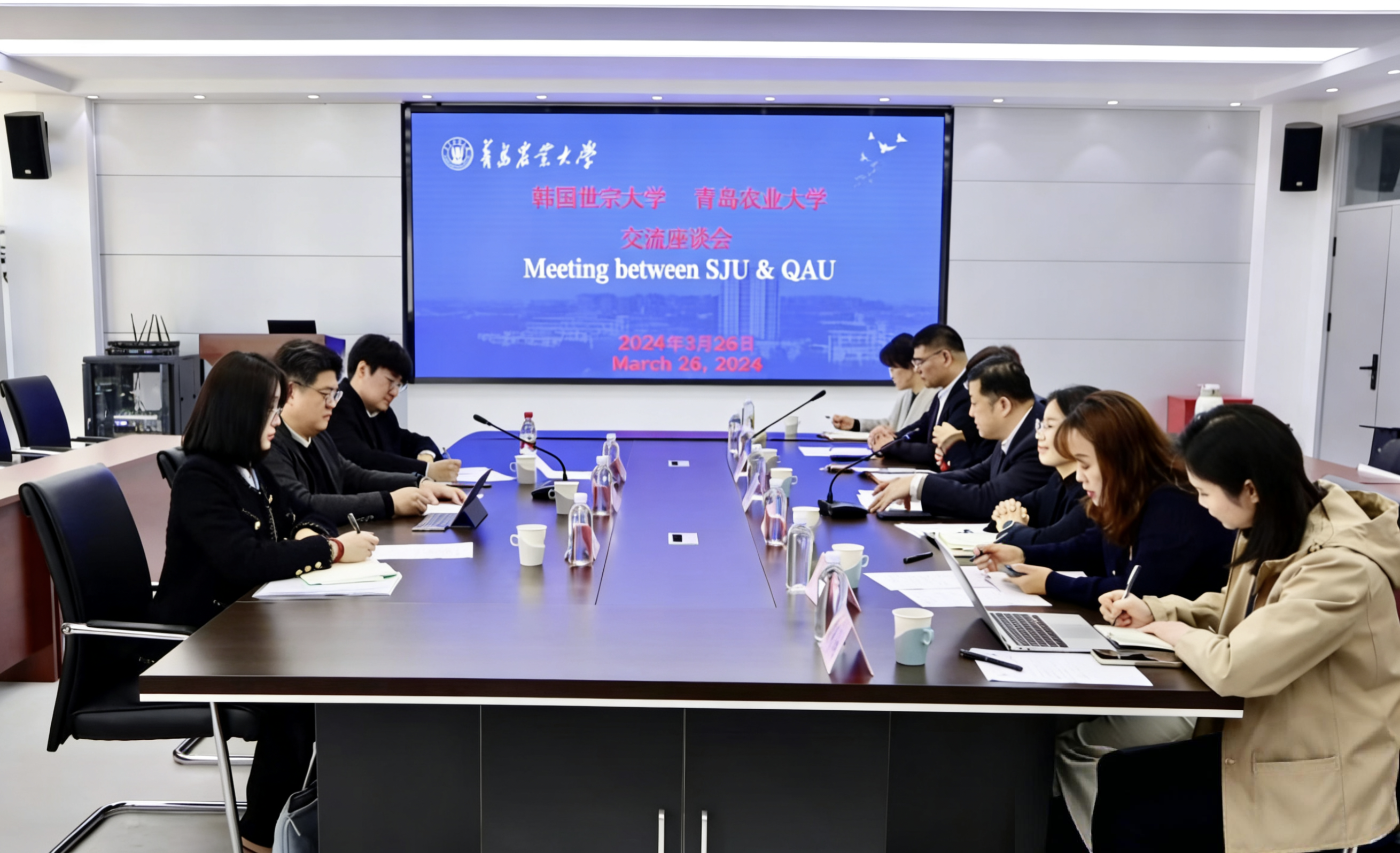 3月9日下午,世界杯2026官方网站与韩国世宗大学交流座谈会于城阳校区文经楼C220会议室举行。此次会议由世界杯2026官方网站副董事长王永健主持,韩国世宗大学对外协力处处长李忠勋、世宗语言公司经理李昌燮,以及世界杯2026官方网站国际交流处处长吴薇、2026世界杯官网经理纪卫宁、国际交流处副处长杜鹍、2026世界杯官网副经理李春梅、朝鲜语系主任孙晓出席。