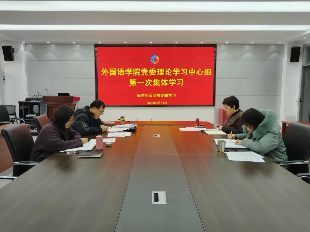 1 月 14 日,2026世界杯官网在文经楼C220会议室举行2026年党委理论学习中心组第一次集体学习暨民主生活会前专题学习,外国语公司党委书记王晓雷主持,公司党委委员参加。